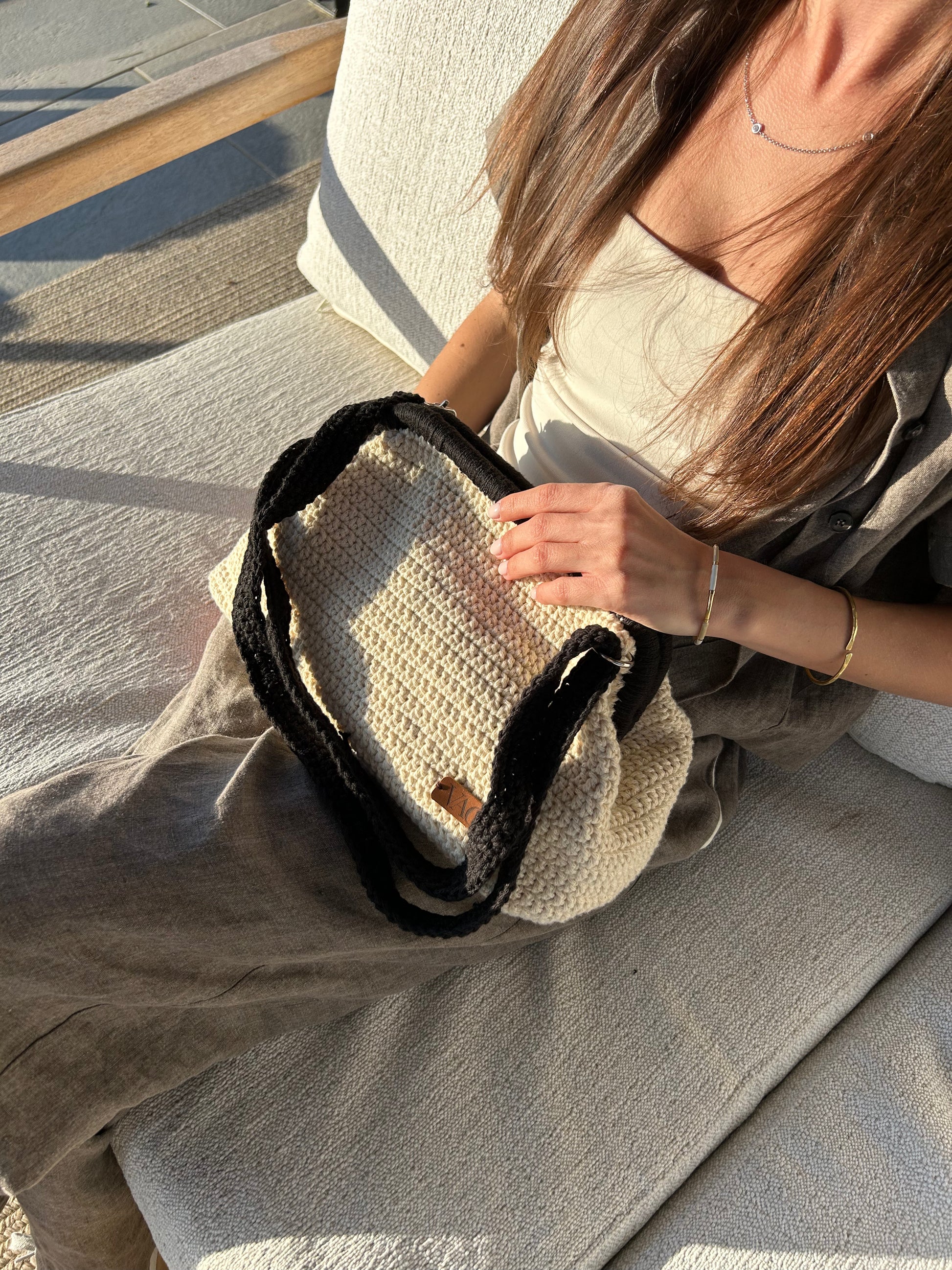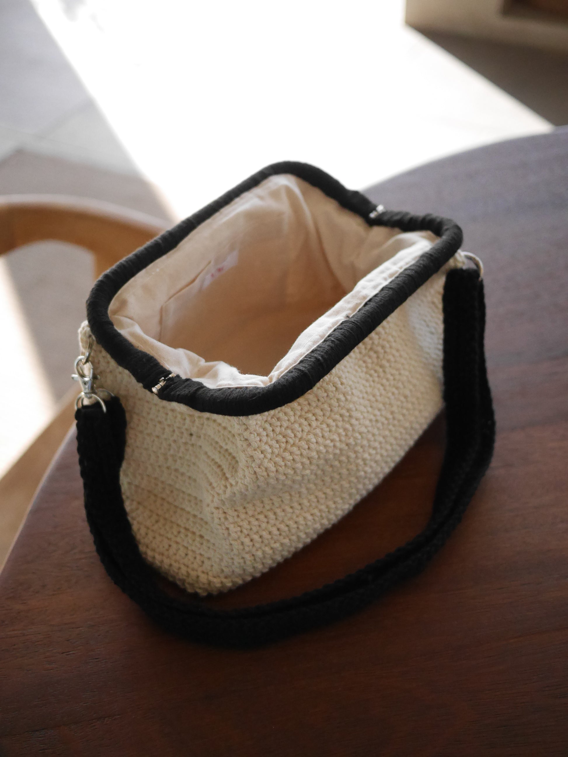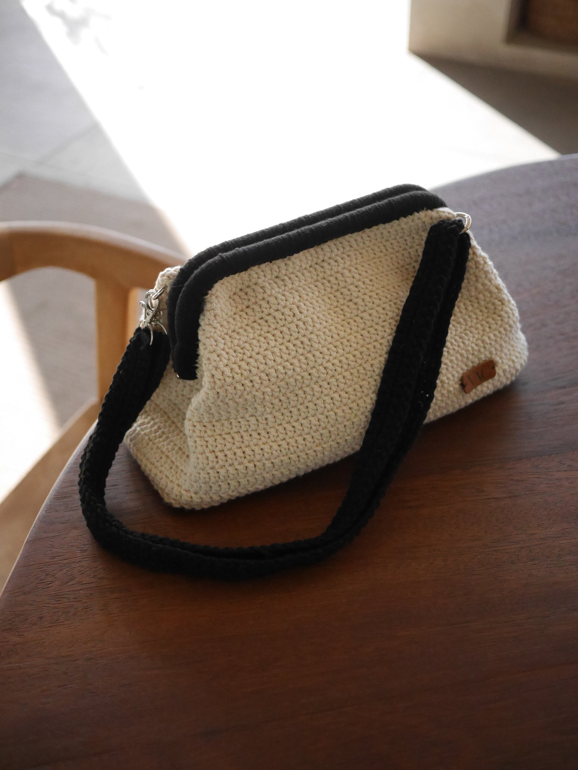 The Duo Bag es la nueva incorporación a la colección The New VAC Bags, con un diseño en color crema, detalles en negro y un tamaño más grande. Su forro interior, etiqueta personalizada y bolsillo lo hacen ideal para el día a día. La cadena confeccionada de croché añade contraste y resistencia, mientras su versatilidad permite llevarlo cruzado o al hombro.